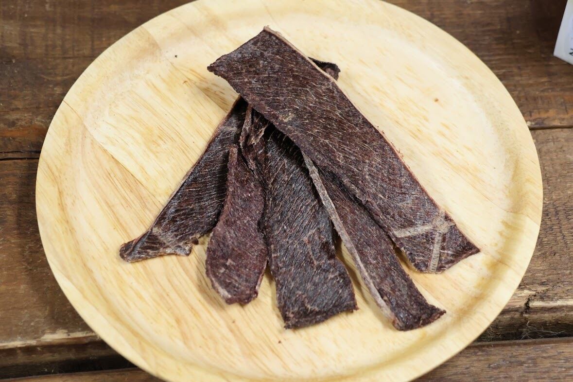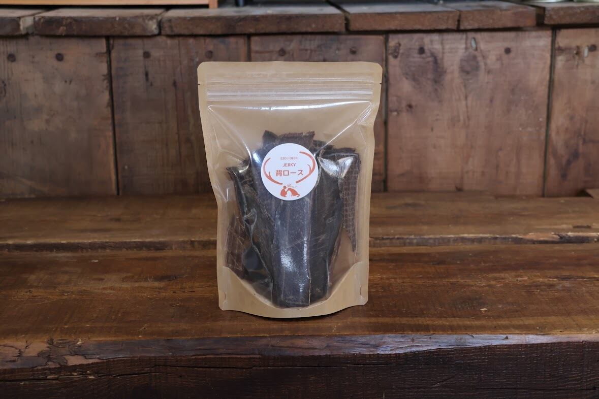 背ロースジャーキーは、厳選されたエゾシカ肉を使用し、しっかりとした食感を大切に仕上げました。素材の旨味をギュッと閉じ込めており、食べ応え抜群です。愛犬の食事やおやつとしてぴったりです!